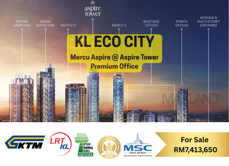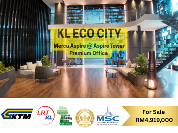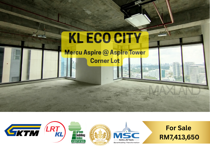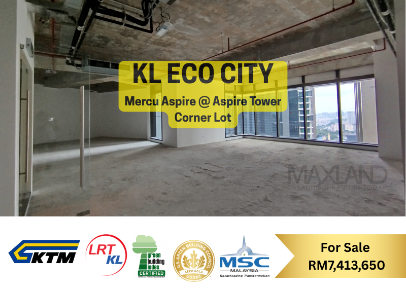Discover a premier real estate opportunity in the heart of Kuala Lumpur’s most vibrant integrated hub. This 4,783 sq ft corporate office at Aspire Tower, KL Eco City, is now available for sale at RM 7,413,650.